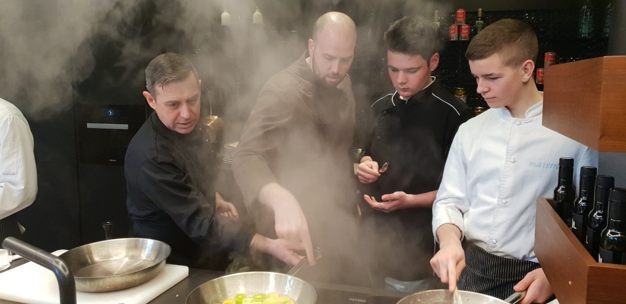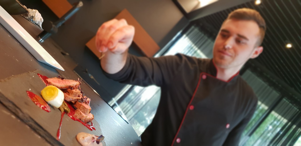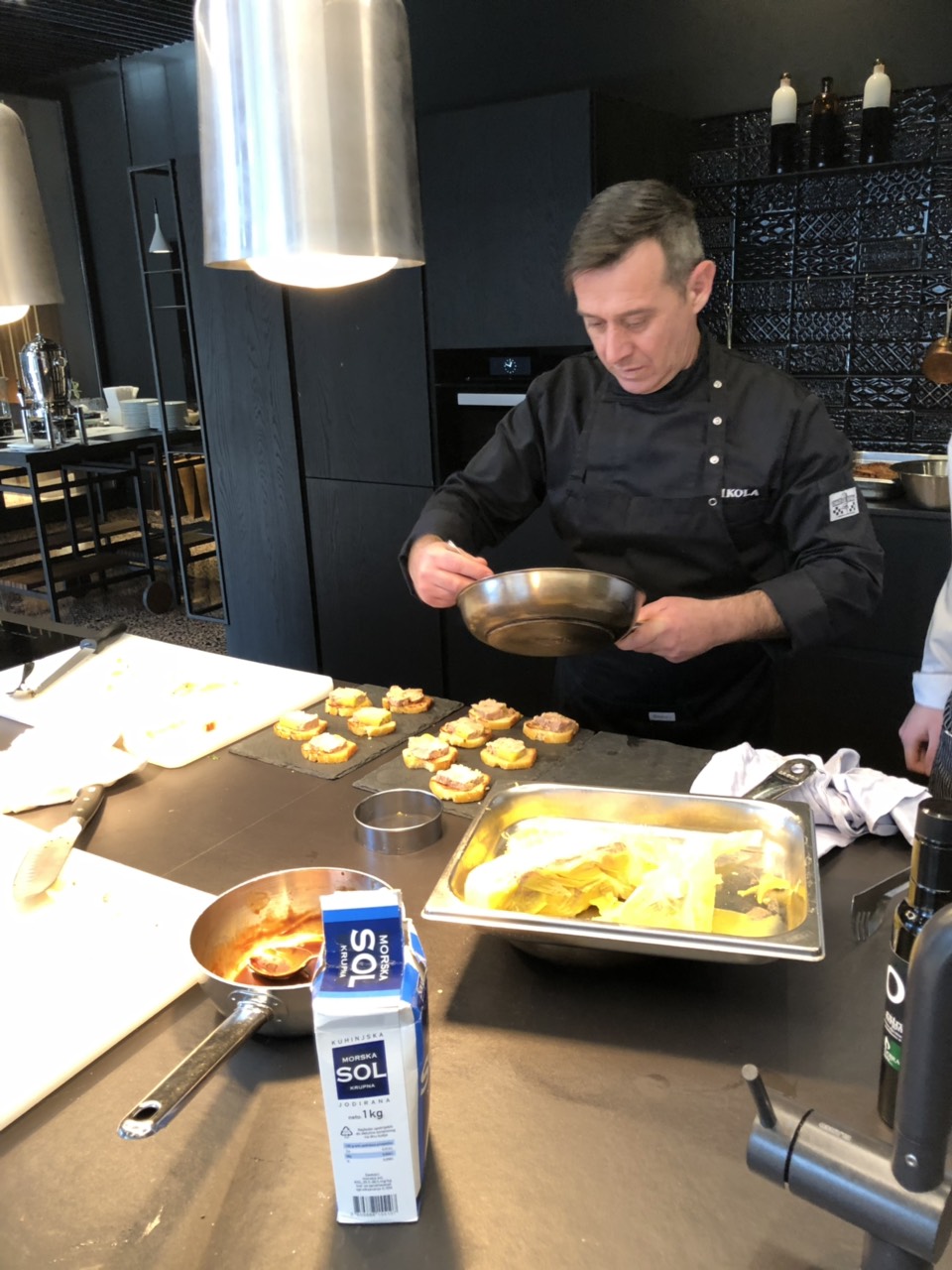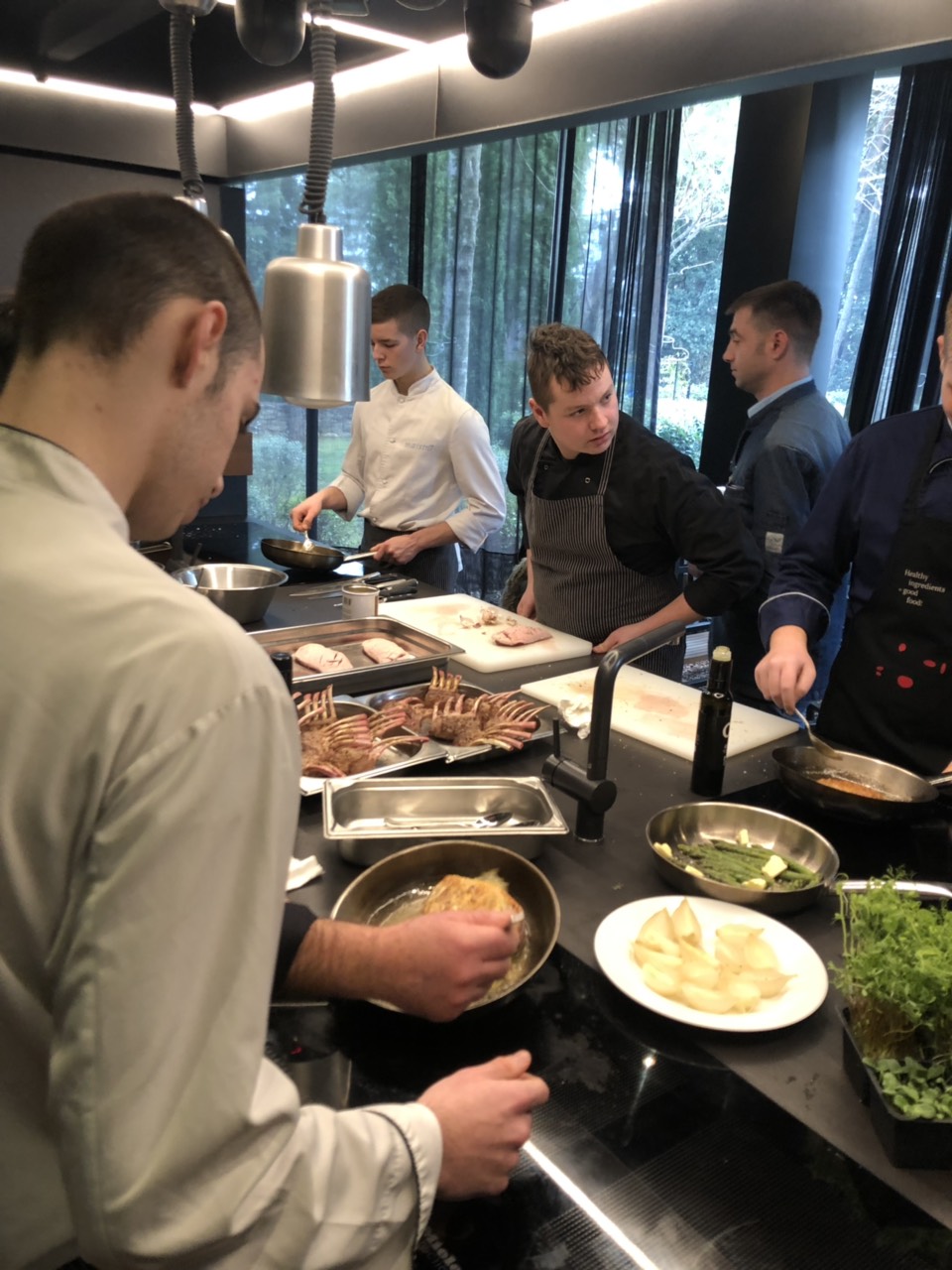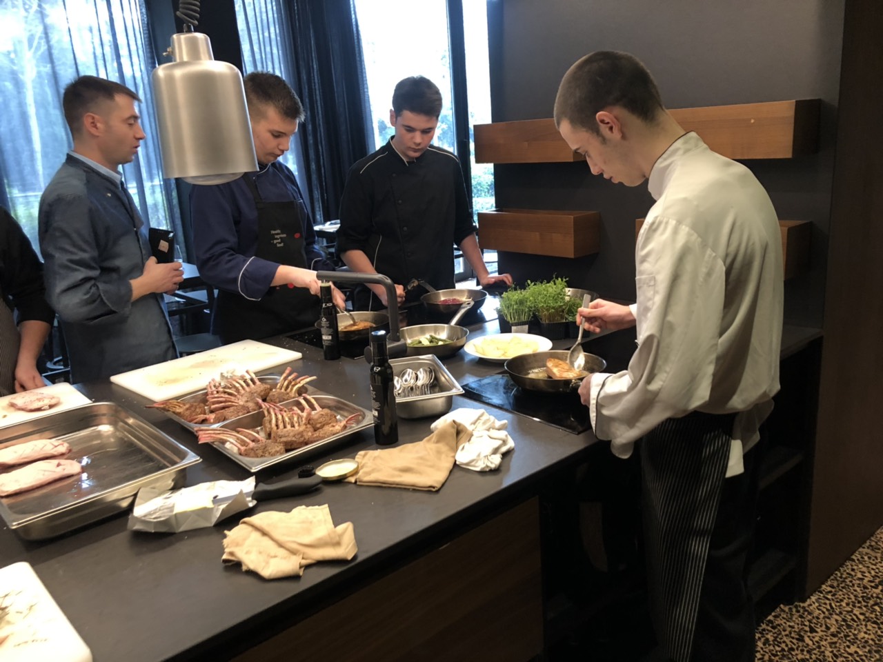 Kuhari su, pod budnim okom Nikole Hrelja spravljali janjeće kotlete s pireom od mrkve i demiglace umakom, pačja prsa s pireom od ljubičastog krumpira i šparoga, a za predjelo paštetu od guščje jetre s preljevom od malina na prepečencu.