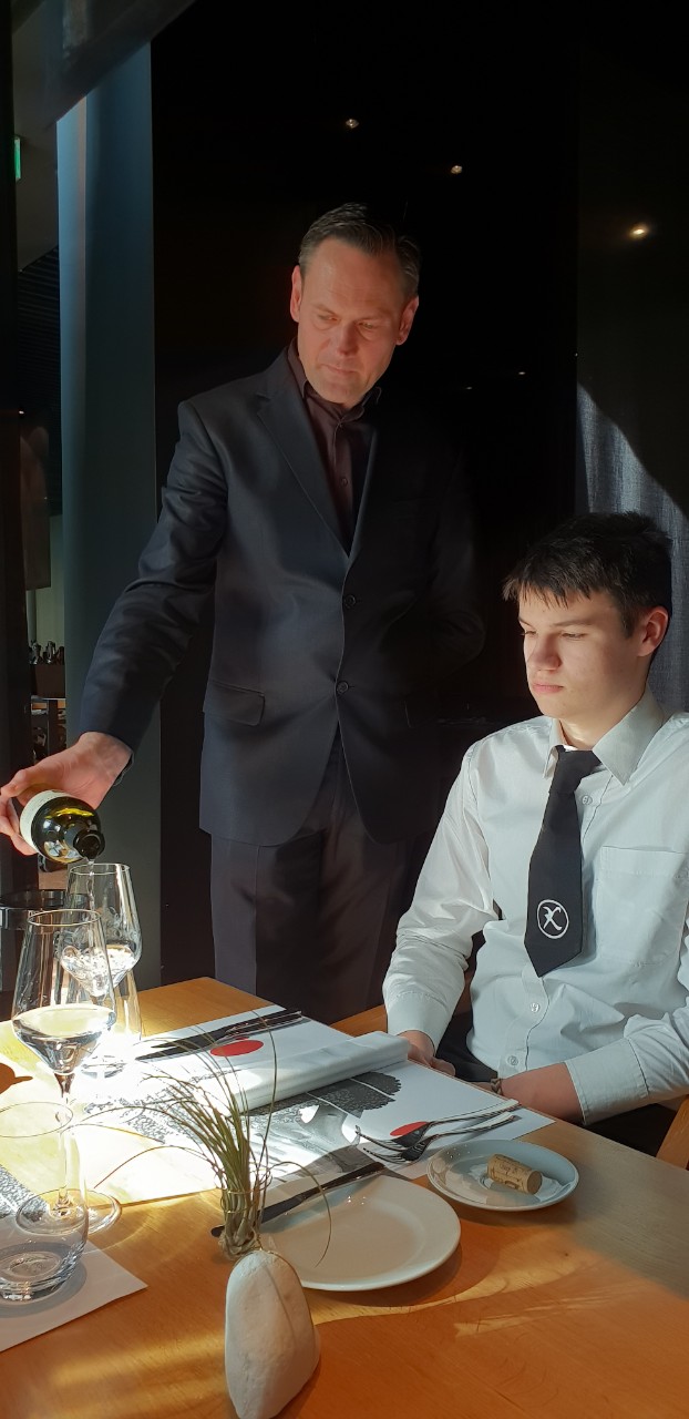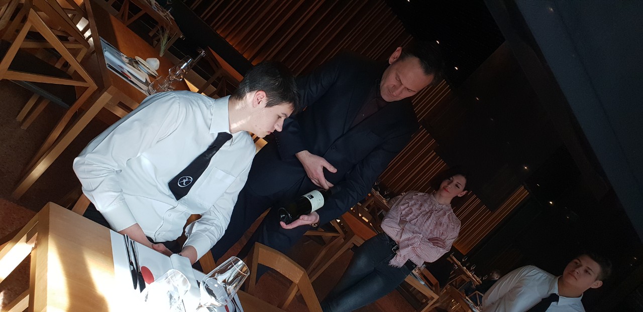 Somelier i voditelj hrane i pića u Hotelu Monte Mulini, Ivo Zgrablić, predstavio je vine-somelierstvo s malim dodatkom o žestokim pićima i cigarama. Nakon predavanja, učenici su odradili i praktični dio, servis u hotelu s pet zvjezdica, prezentacija i otvaranje butelja pred gostom.